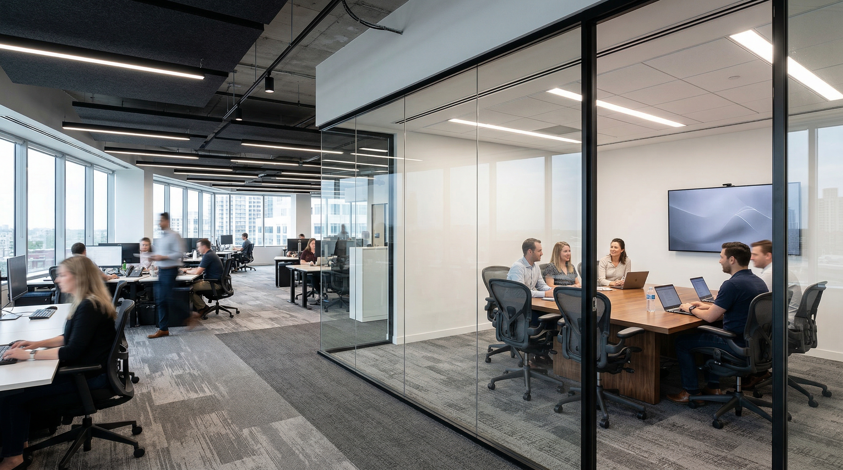 Full height glazed coverage for commercial interiors