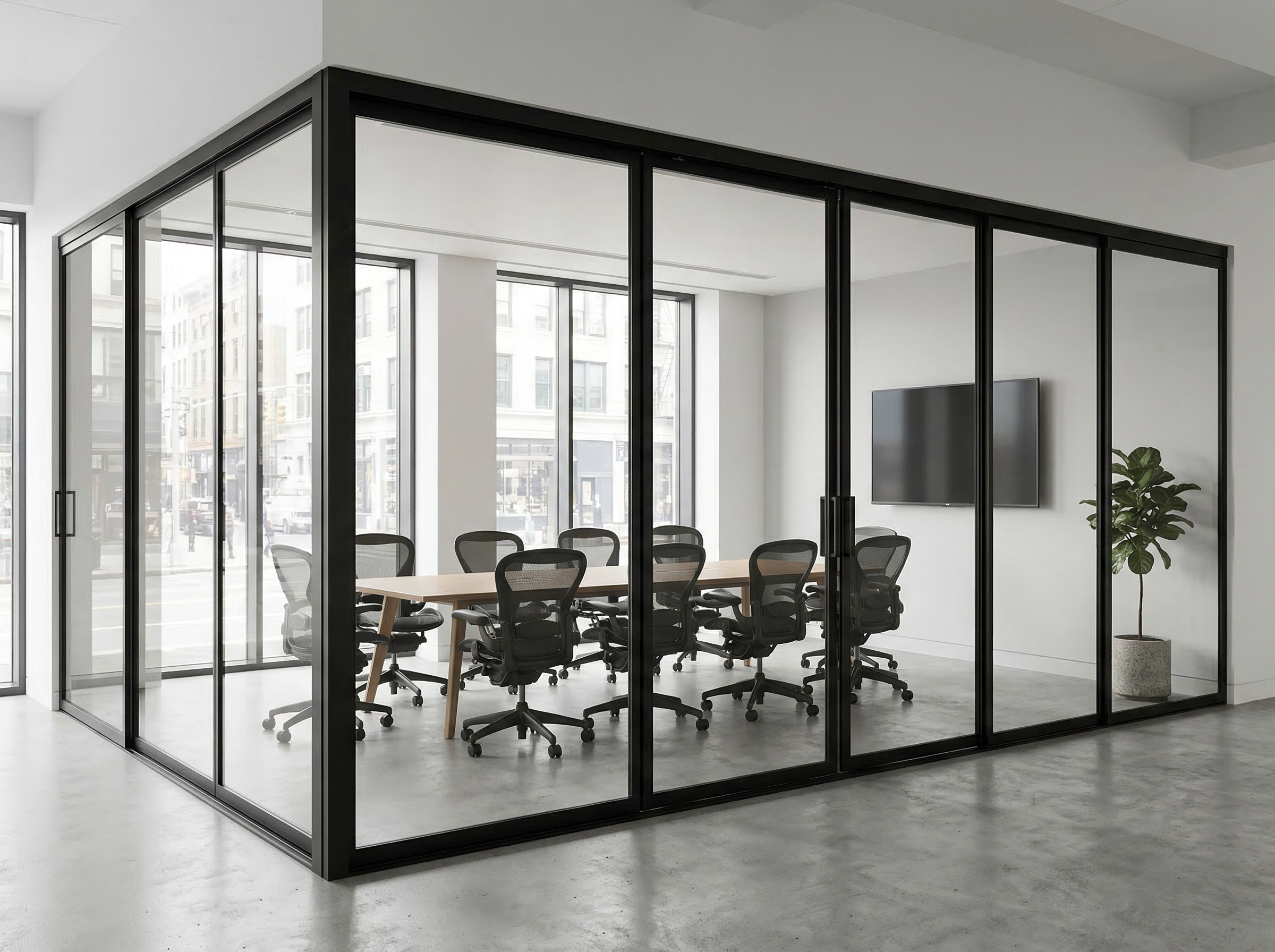 A premium single glazed architectural partition system engineered for flexible modern interiors. Maximise natural light, visual openness and design impact — without compromising on operational flexibility.
