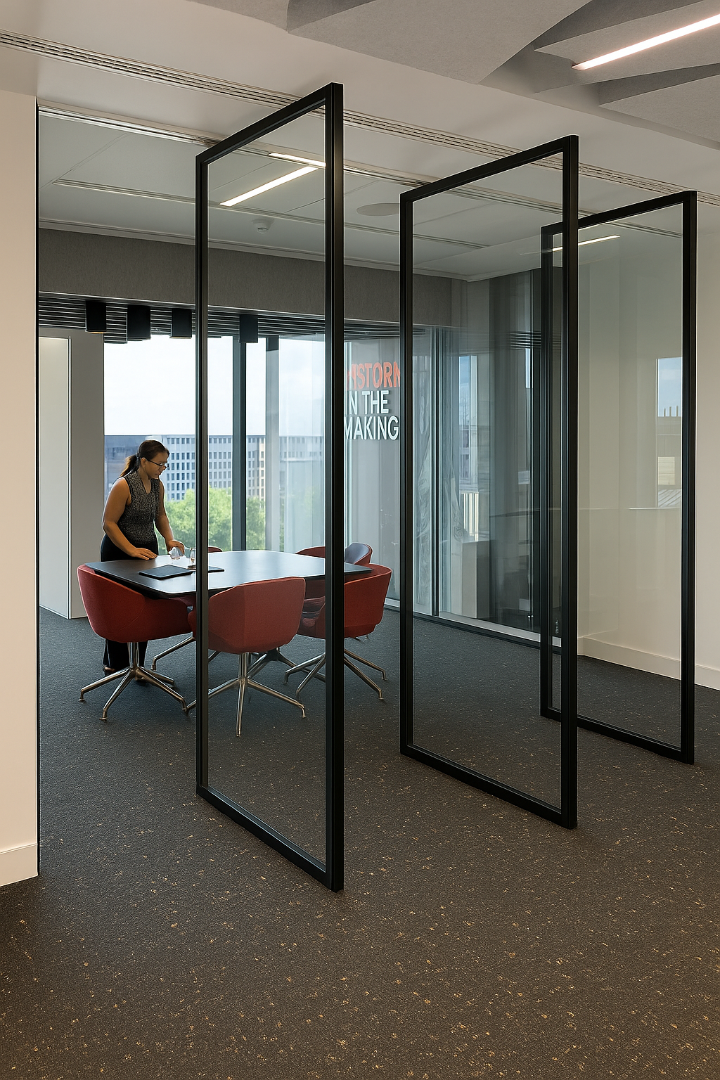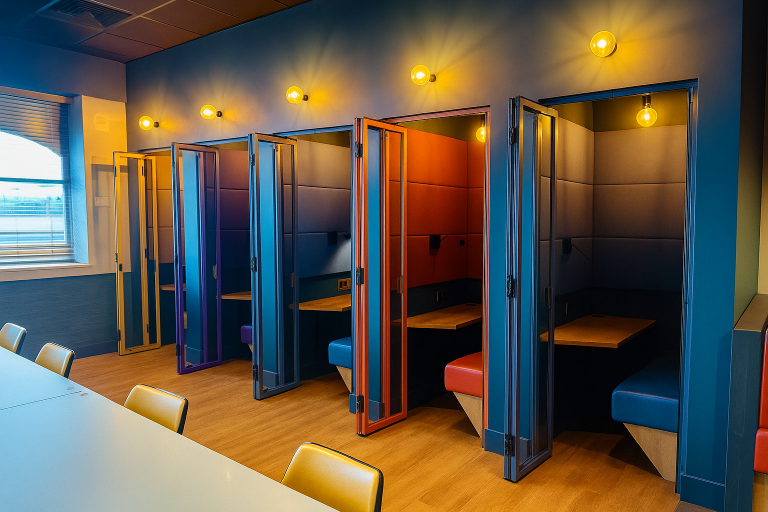 The MG900 really stands out in a variety of settings, making it one of the most adaptable glazed acoustic systems available today. In commercial offices, it effortlessly transforms spaces into flexible meeting rooms, private work areas, quiet zones for concentration, and collaborative hubs. In educational settings, the MG900 improves classrooms, study areas, and breakout spaces by ensuring clear sightlines while maintaining acoustic privacy.