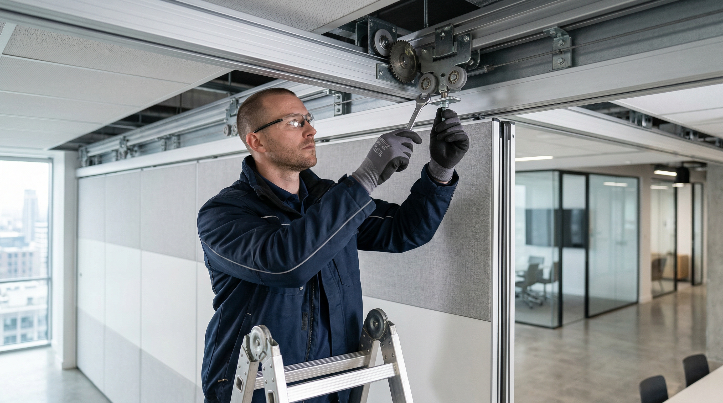 Movable acoustic wall systems are precision-engineered products that rely on correctly adjusted tracks, carriers, seals and mechanisms to operate smoothly and deliver their designed acoustic performance. Over time, components wear, seals degrade and systems drift out of alignment — affecting both ease of operation and sound reduction performance.